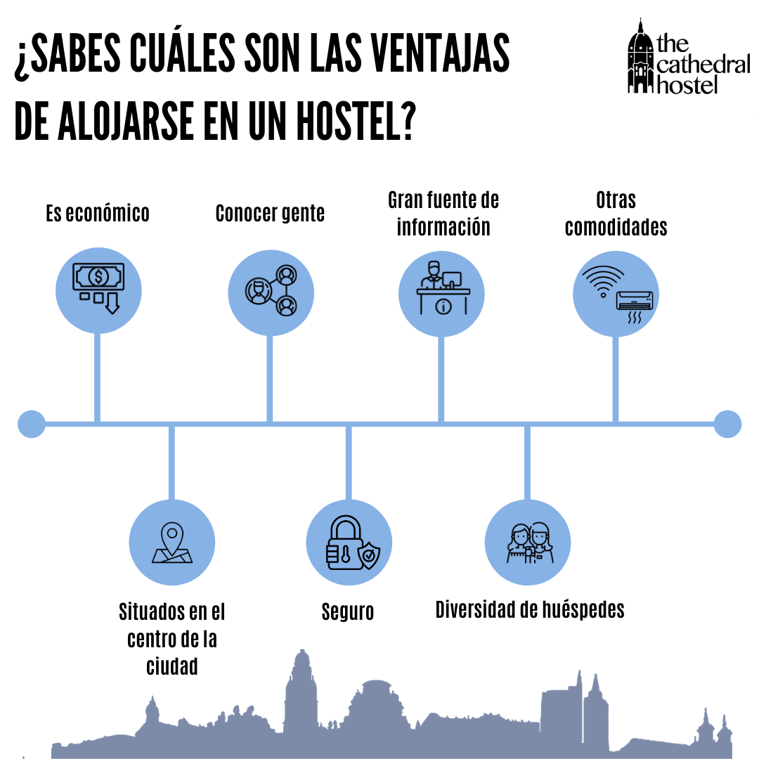 - Es económico, cuando te alojas en un hostel estás pagando por una cama y no por una habitación, y por tanto, es mucho más barato que los hostales o los hoteles. Si tienes un presupuesto limitado, y no te importa compartir habitación y cuarto de baño, un hostel es tu mejor opción. En The Cathedral Hostel disponemos de habitaciones dobles o compartidas, tanto mixtas como femeninas a un precio inmejorable.